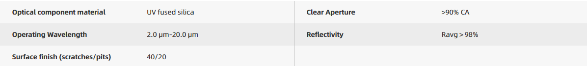 Tuniu offers gold-coated concave mirrors with off-axis holes. Two gold-coated concave mirrors with the same focal length can form a cavity. At least one of the mirrors has a through-hole (central hole or off-axis hole), allowing light to enter and exit through the hole on the concave mirror, undergoing multiple reflections within the cavity before returning to its entry point, which can be used as a Herriot gas absorption cell. Tuniu mirrors with through-holes feature a Ø3.0 mm aperture on the backside with a 60° chamfer. Tuniu gold-coated concave mirrors use UV-grade fused silica as the substrate material, providing higher thermal stability. The surface is coated with a silica protective layer to prevent direct contact between the metal film and air, avoiding oxidation of the metal film that could affect optical performance.