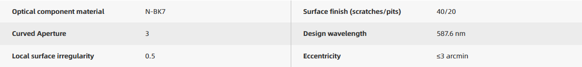 Tuniu plano-convex lenses have positive focal lengths and are commonly used in applications such as imaging or beam collimation. Tuniu plano-convex lenses are manufactured using N-BK7 glass that complies with RoHS standards. N-BK7 is the most commonly used material for high-quality optical components, primarily applied in visible and near-infrared fields. All circular lenses from Tuniu are mounted with standard lens tubes or lens mounting adapters. These mechanical components are engraved with product model, type, diameter, and focal length for easy identification by users.