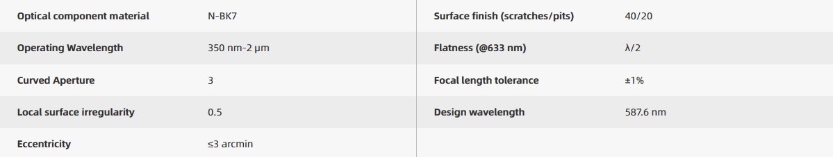 Tuniu Plano-Concave Lenses have a negative focal length and are commonly used in applications such as imaging or beam collimation. Tuniu plano-concave lenses are manufactured using N-BK7 glass that complies with RoHS standards. N-BK7 is the most commonly used material for high-quality optical components, primarily applied in visible and near-infrared fields. All circular lenses from Tuniu come pre-installed with standard lens tubes or lens mounting adapters. These mechanical components are engraved with product model, type, diameter, and focal length for easy identification of lens parameters by users.