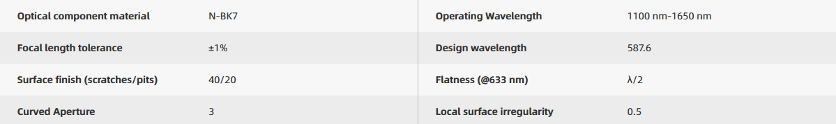 l Operating Wavelength: 1100 nm-1650 nm (AR Coating)