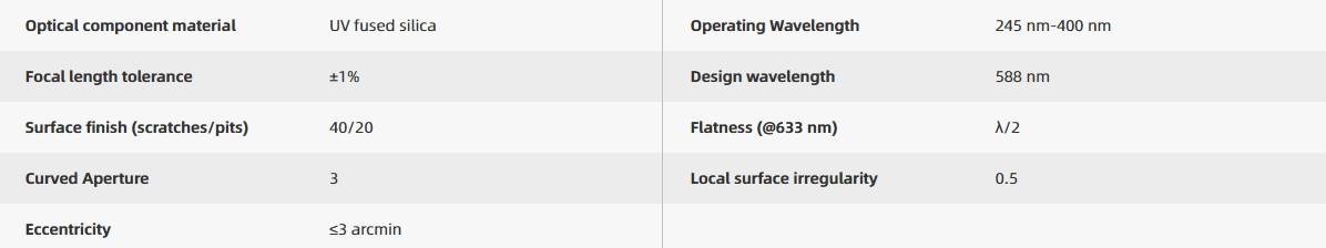 l Operating Wavelength: 245 nm-400 nm (AR Coating)