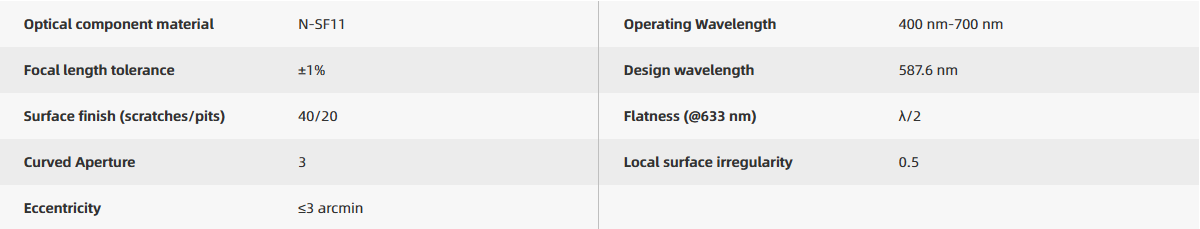 l Operating Wavelength: 400 nm-700 nm (AR Coating)