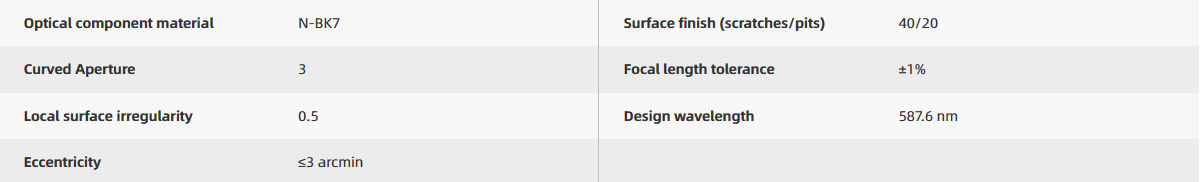 The Tuniu Double-Convex Lenses have a positive focal length and are commonly used in applications such as imaging or beam collimation. Tuniu manufactures double-convex lenses using N-BK7 glass, which is the most commonly used material for high-quality optical components, primarily for visible and near-infrared applications. All circular lenses from Tuniu are pre-installed with standard lens tubes or lens mounting adapters. These mechanical components are engraved with the product model, type, diameter, and focal length for easy identification of lens parameters.