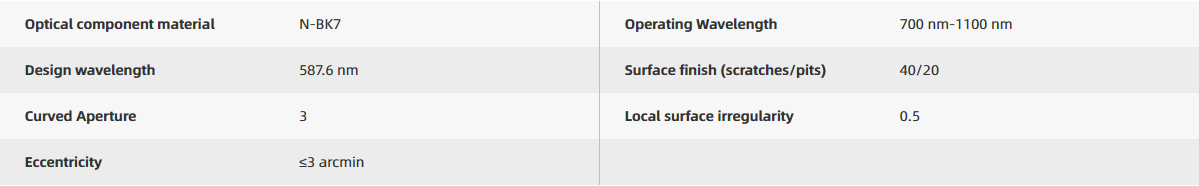 The Tuniu double-concave lens has a negative focal length and is commonly used in applications such as imaging or beam collimation. Tuniu double-concave lenses are manufactured using N-BK7 glass that complies with RoHS standards. N-BK7 is the most commonly used material for high-quality optical components, primarily applied in the visible and near-infrared spectral ranges. All Tuniu circular lenses come pre-installed with standard lens sleeves or lens mounting adapters. These mechanical components are engraved with product model numbers, types, diameters, and focal lengths for easy identification of lens parameters by users.