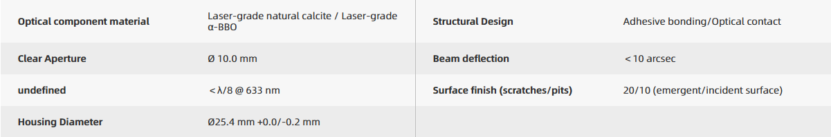 l Bonded with the adhesive when the material is calcite, optical contact process adopted when the material is α-BBO.