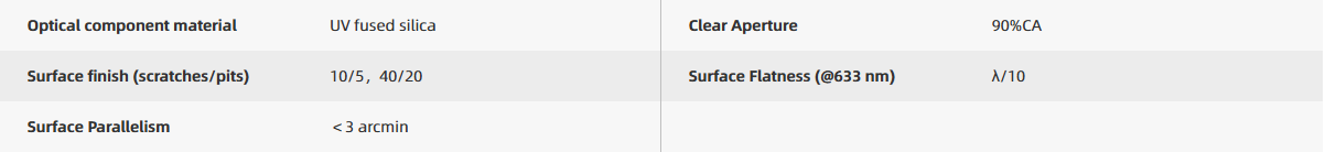 The reflector is used to change the direction of the light beam. Tuniu fused silica broadband dielectric coating achieves a reflectivity of over 99% within the working wavelength range. To meet customers' diverse size requirements, Tuniu offers UVFS dielectric mirrors in various shapes including round, oval, square, and D-shaped. Tuniu also provides customized services for dielectric-coated fused silica reflectors. For customization needs, please contact our technical support.