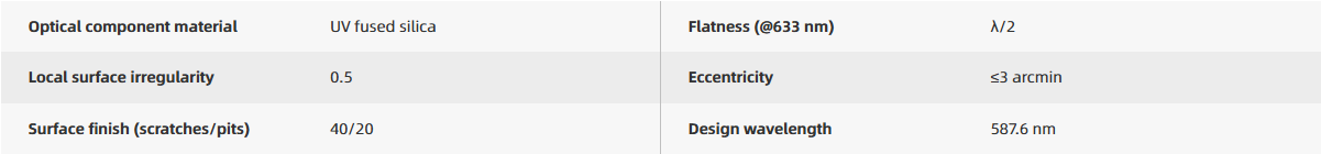 Tuniu plano-convex lenses are made from UV fused silica glass, which offers improved homogeneity and a lower thermal expansion coefficient than N-BK7 glass. They are primarily used in the UV and near-infrared regions. They have a positive focal length and are often used in imaging or beam collimation applications. Tuniu mounted lenses are mounted in standard lens tubes, which are engraved with the model number, type, diameter, and focal length for quick identification.