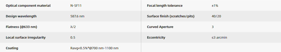 Tuniu Plano-Concave Lenses have negative focal lengths and are commonly used in applications such as imaging or beam collimation. Since N-SF11 has a lower Abbe number, Tuniu chooses to use RoHS-certified N-SF11 to manufacture lenses with various smaller focal lengths. Additionally, N-SF11 lenses are more suitable for particularly harsh (acidic or alkaline) environments. All circular lenses from Tuniu come pre-installed with standard lens tubes or lens mounting adapters. The surfaces of these mechanical components are engraved with product model, type, diameter, and focal length, allowing users to quickly identify lens parameters.